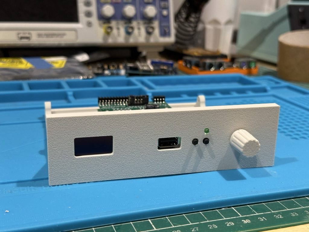 My goal was to design and build a 5.25” enclosure for the Gotek with a 0.96” Old display and a rotary switch, and lastly to have a similar plastic cooler tone to the IBM 5170.