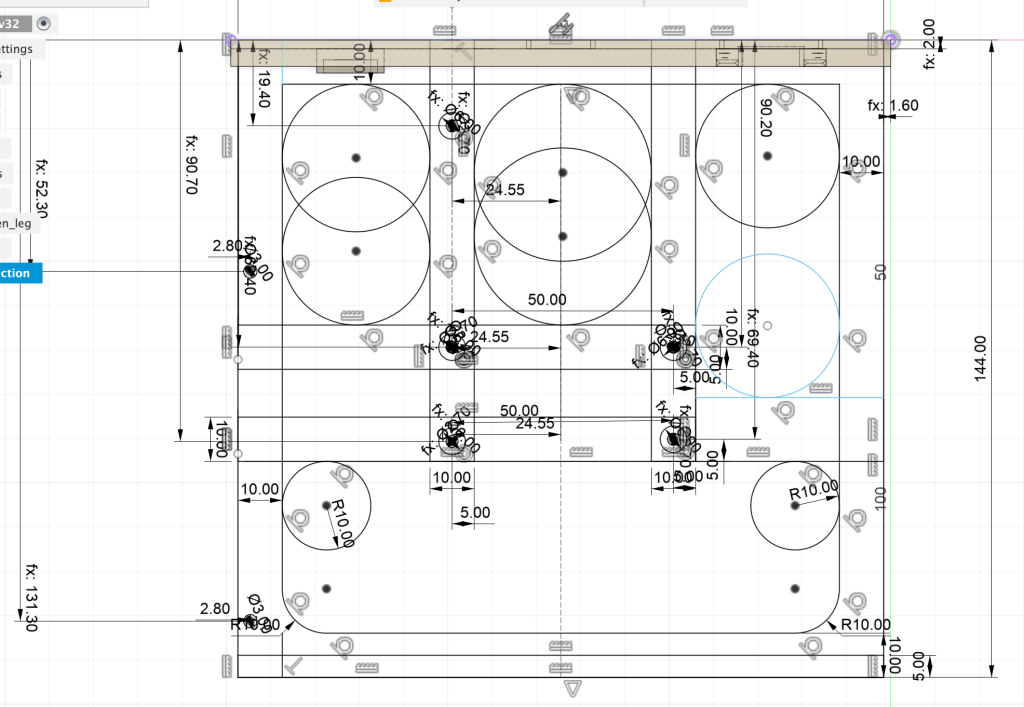 Regarding the 3D printing, my approach for the main part was to split into 2 parts to have a nice front panel and be able to print the base with the right orientation.
