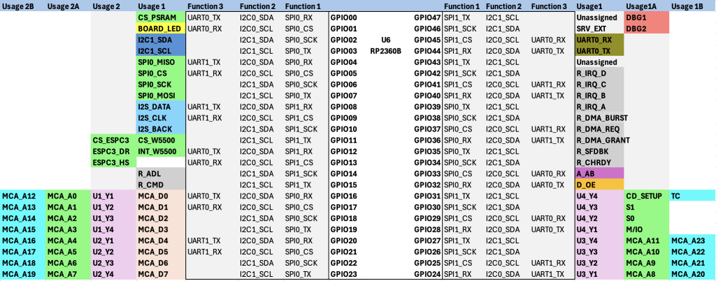 This is a pretty huge list of signal to handle… this is why the RP2350B with 48 GPIOs will be usefull along with a proper signal multiplexing for address lines and data lines.